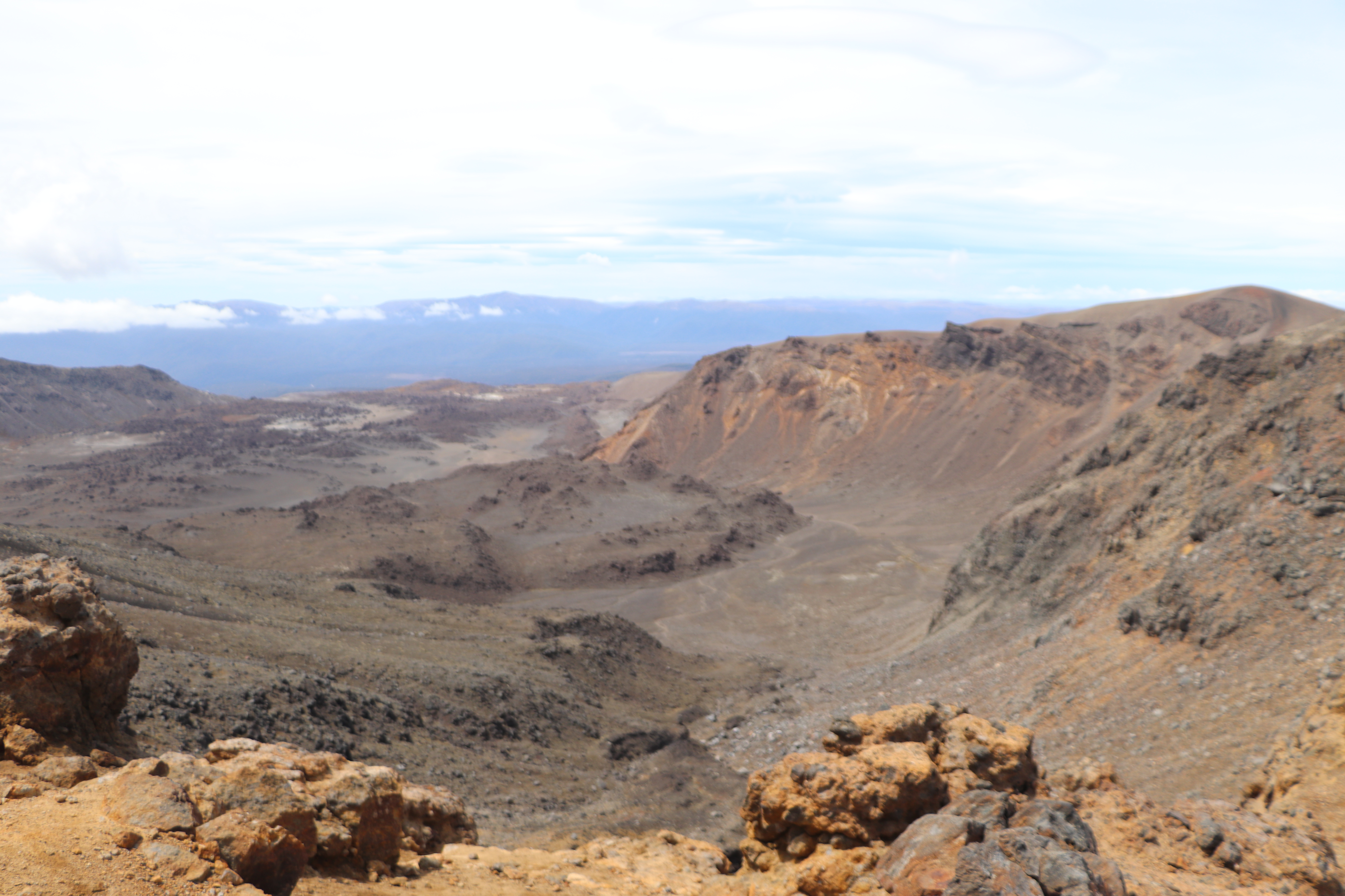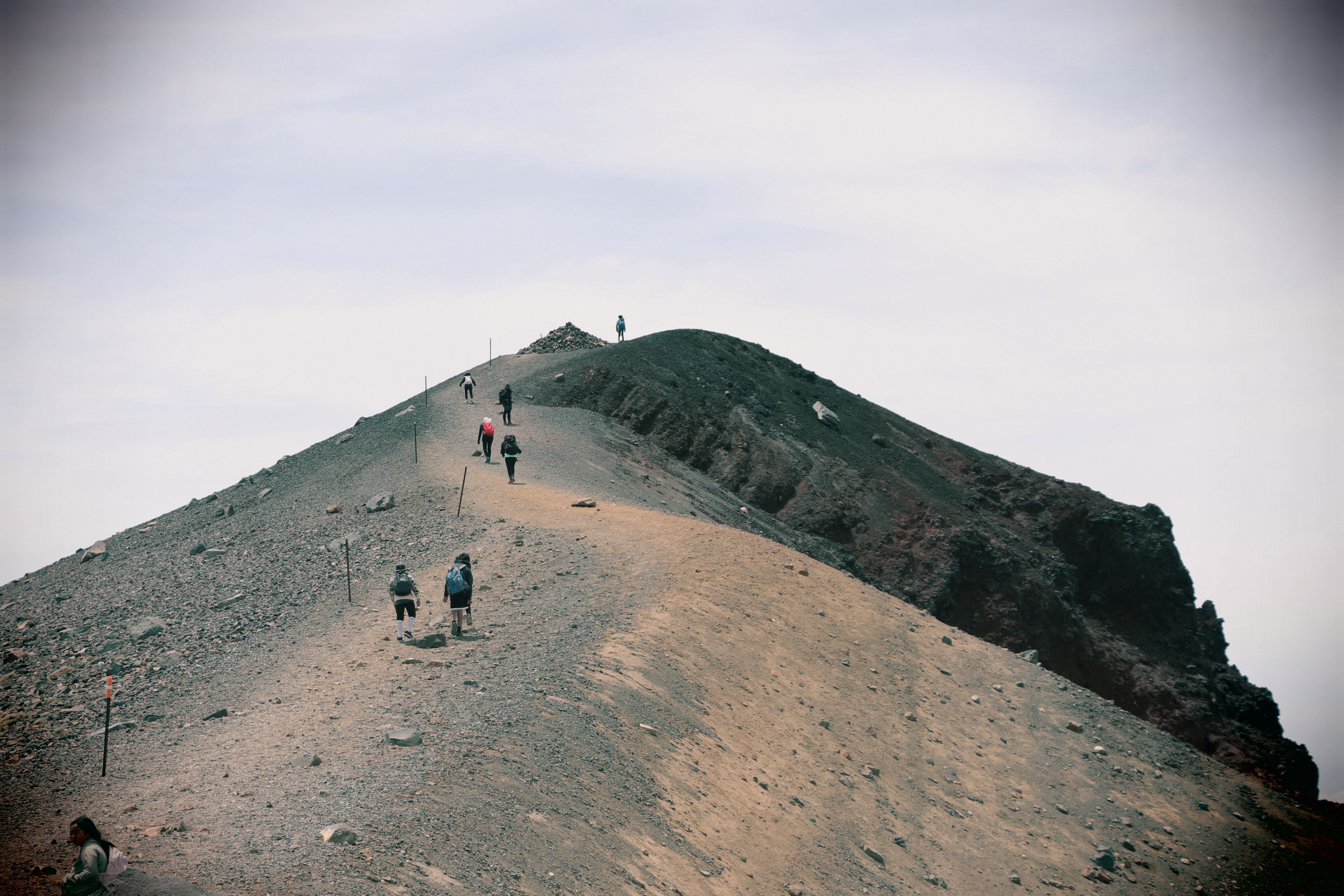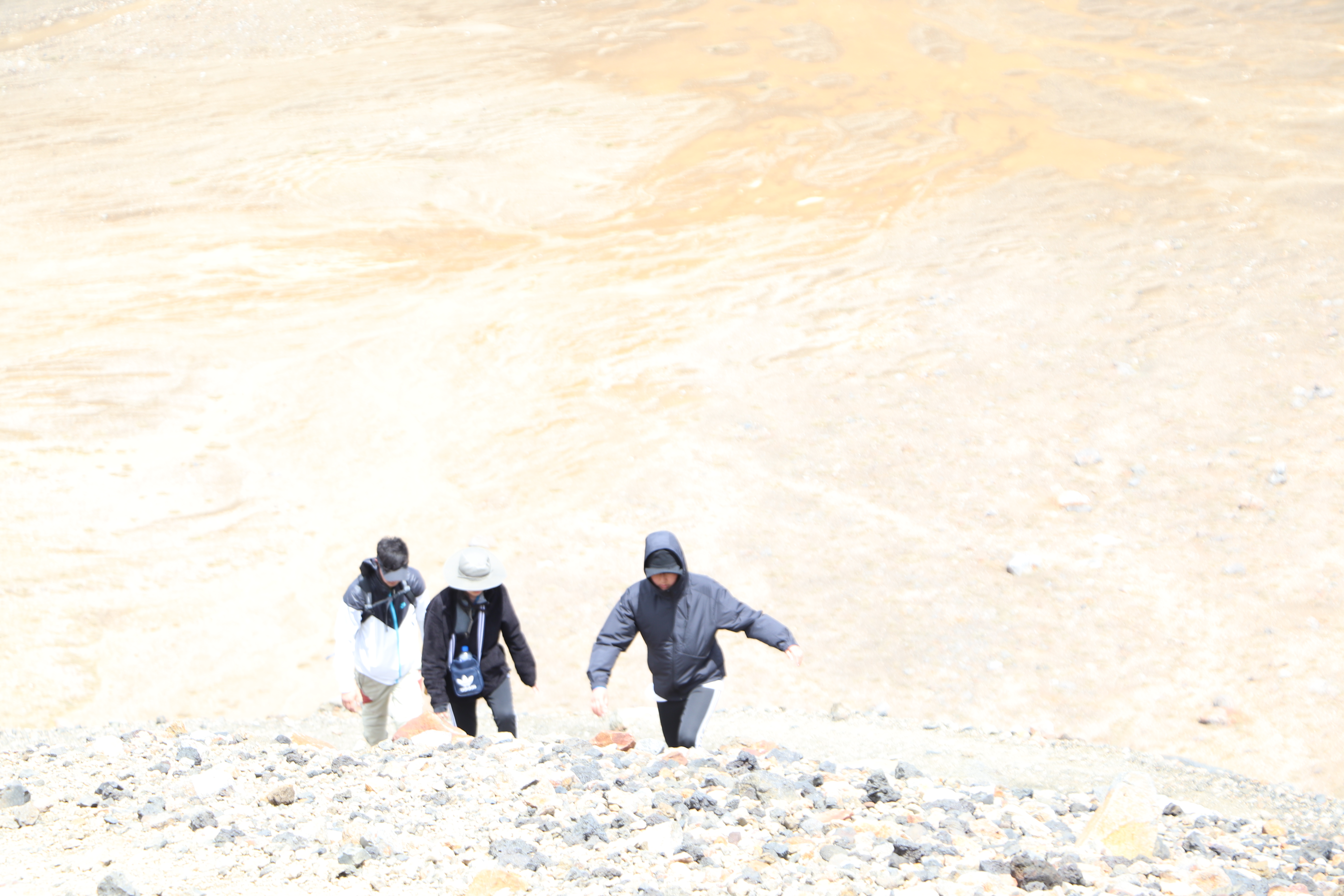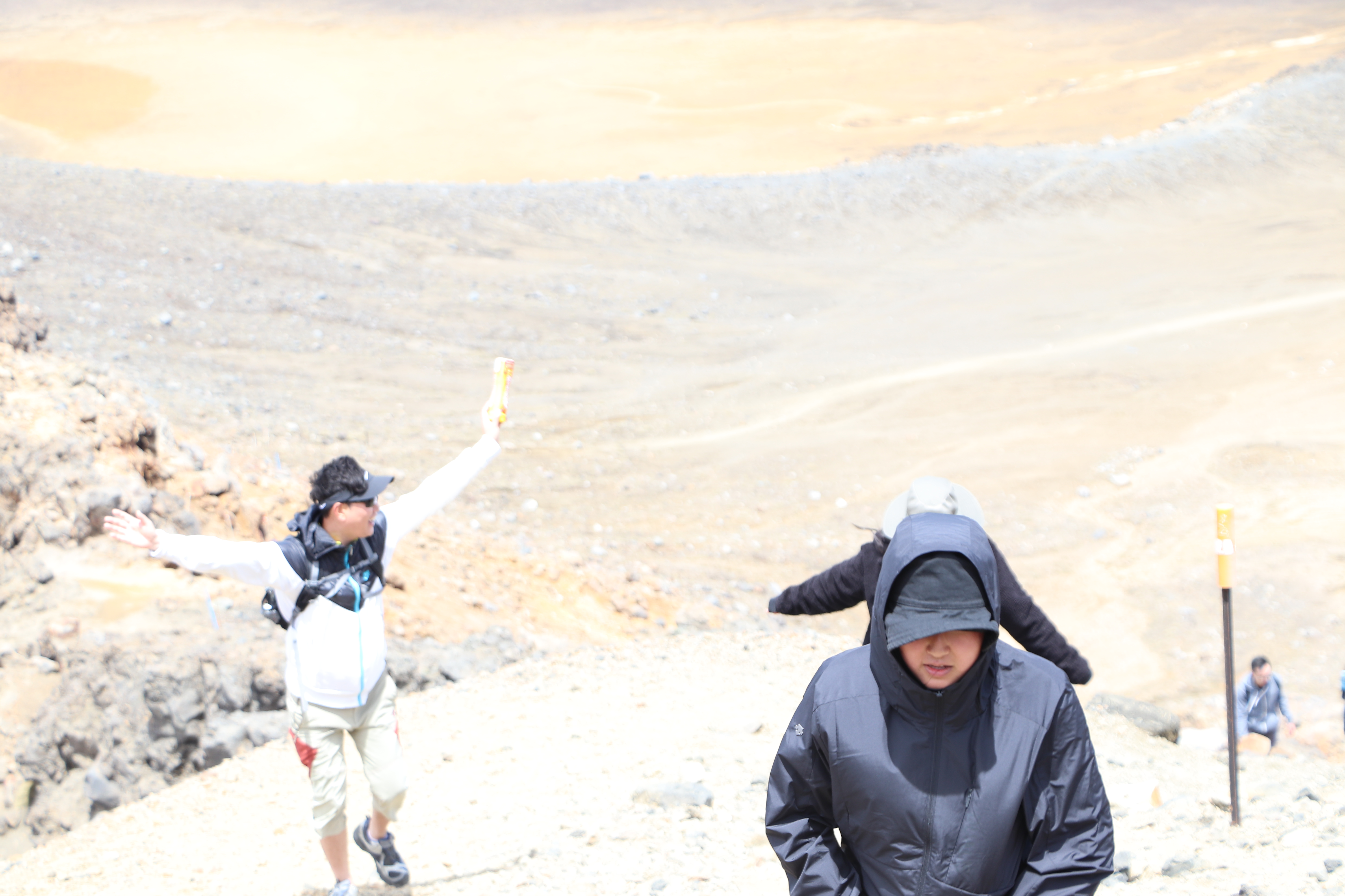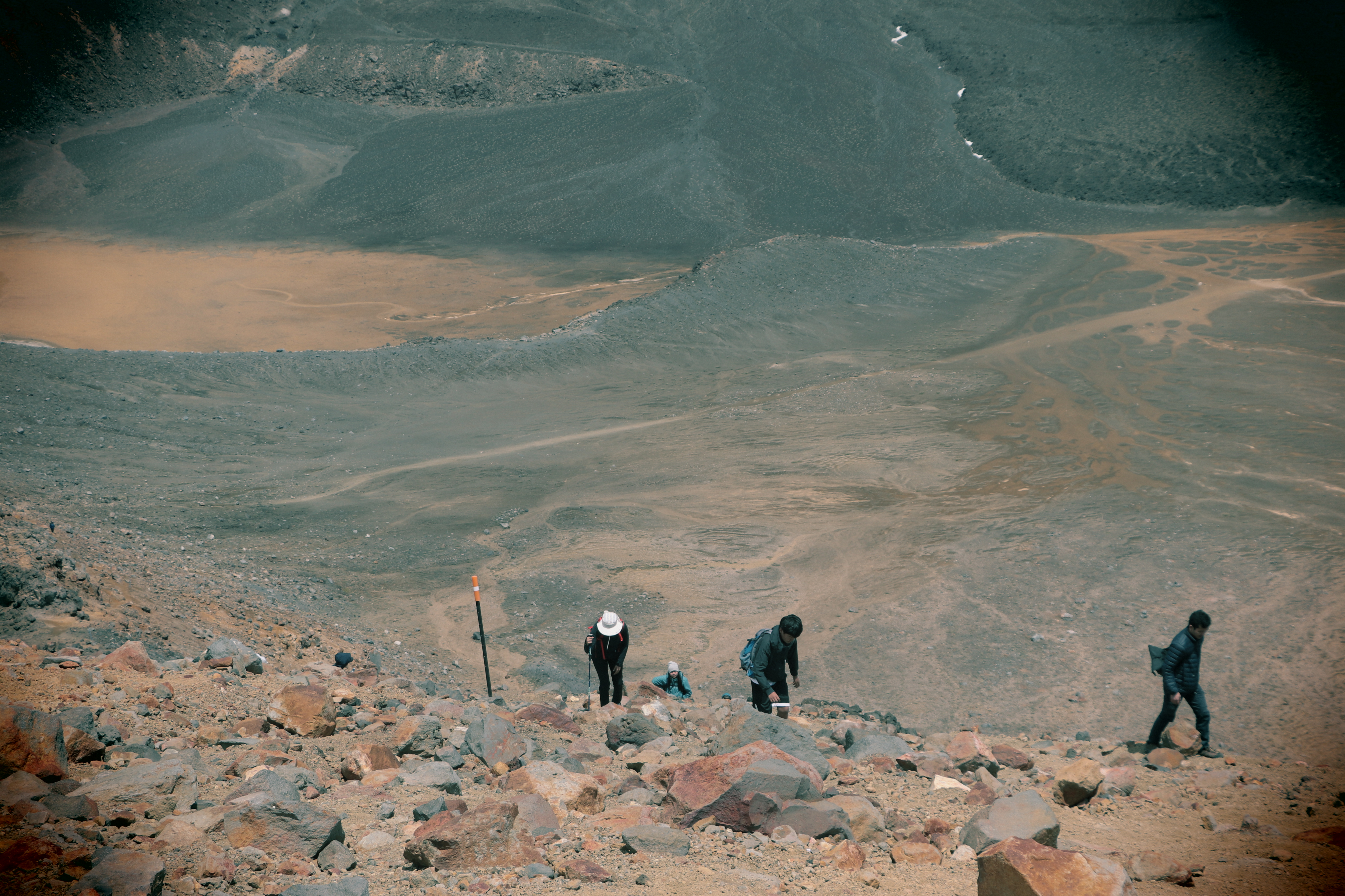 첫 1시간은 비교적 평지코스인데 정말 사람을 거의 못봤어요. 저희 팀만 있었고 저희 보다 먼저 출발한 키위들 후발대를 조금 지나치긴 했습니다. 통가리로 트래킹에 또 하나의 적은 바람인데 이 때까진 바람도 거의 없고 구름이 해를 가려 아주 편안하게 걸을 수 있었네요.