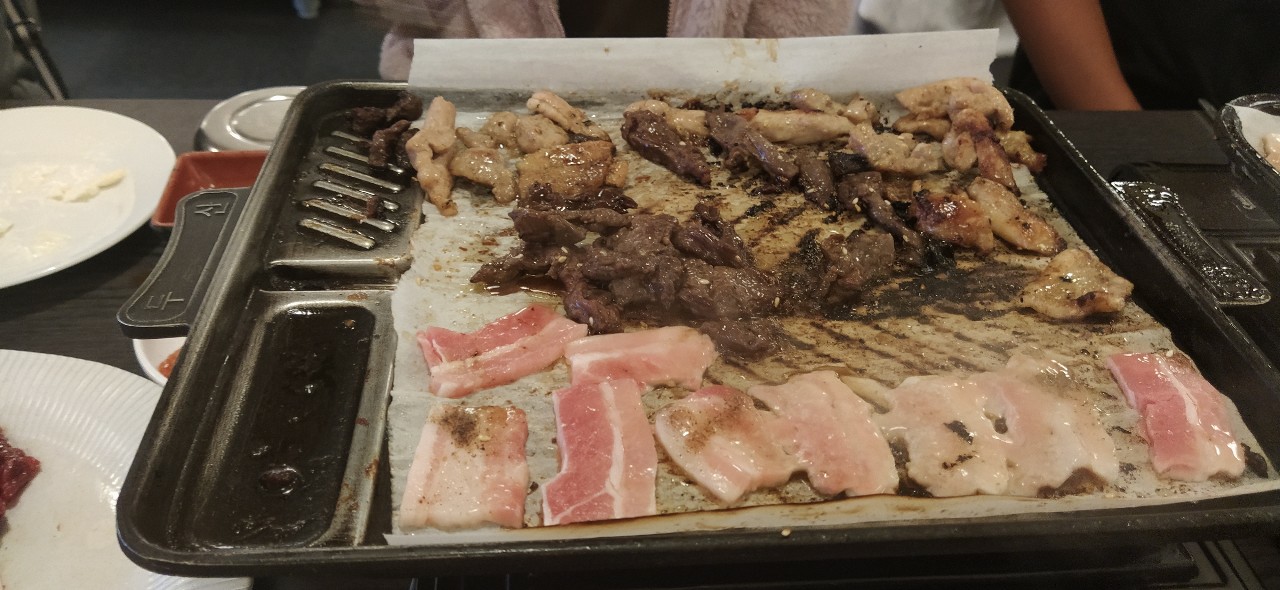 고단한 몸이지만 소고기, 닭고기 그리고 삼겹살도 이어지는 콤비네이션이 우리를 즐겁게 합니다. 신나게 잘 먹고 이제 1시간만 가면 집으로 돌아가 잘 씻고 편하게 쉴 수 있겠지요.
