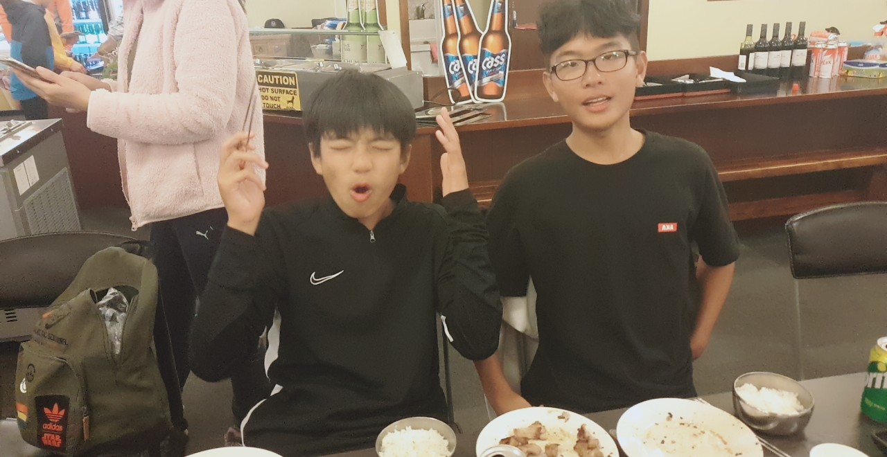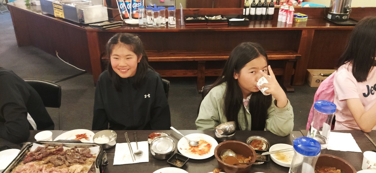 원래는 다들 차에서 잠이들어 타우랑가까지 3시간을 달리기도 하는데 이날 인원이 많았던 아이들은 일찍이 고기 먹자고~ 먹자고~ 해서 예약하고 모두 함께 가기로 했습니다.