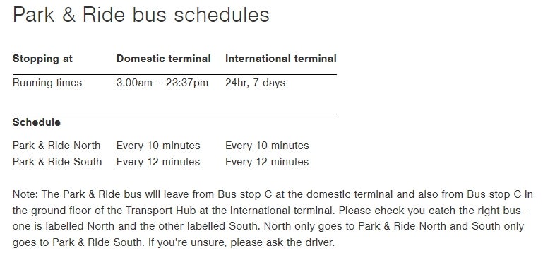 픽드롭존에 Park&Ride 셔틀버스 표시판이 있고 버스는 매 10-12분마다 순환합니다