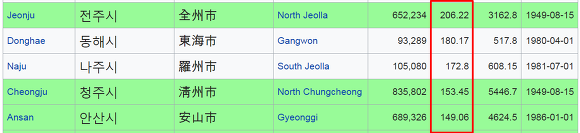 이제 마지막으로 타우랑가와 비슷한 면적의 한국도시는 어디일까 알아보겠습니다.
