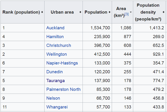 위 표를 보시면 타우랑가는 7번째로 땅의 크기가 큰 도시입니다.