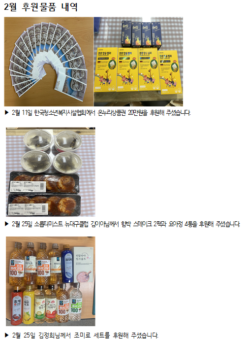 보내주신 소중한 후원물품은 입소 및 이용 청소년들이