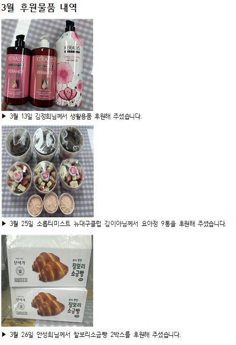 2026년 3월에도 쉼터에 지속적인 관심과 따뜻한 후원을 보내주신 모든 분들께 진심으로 감사드립니다.
