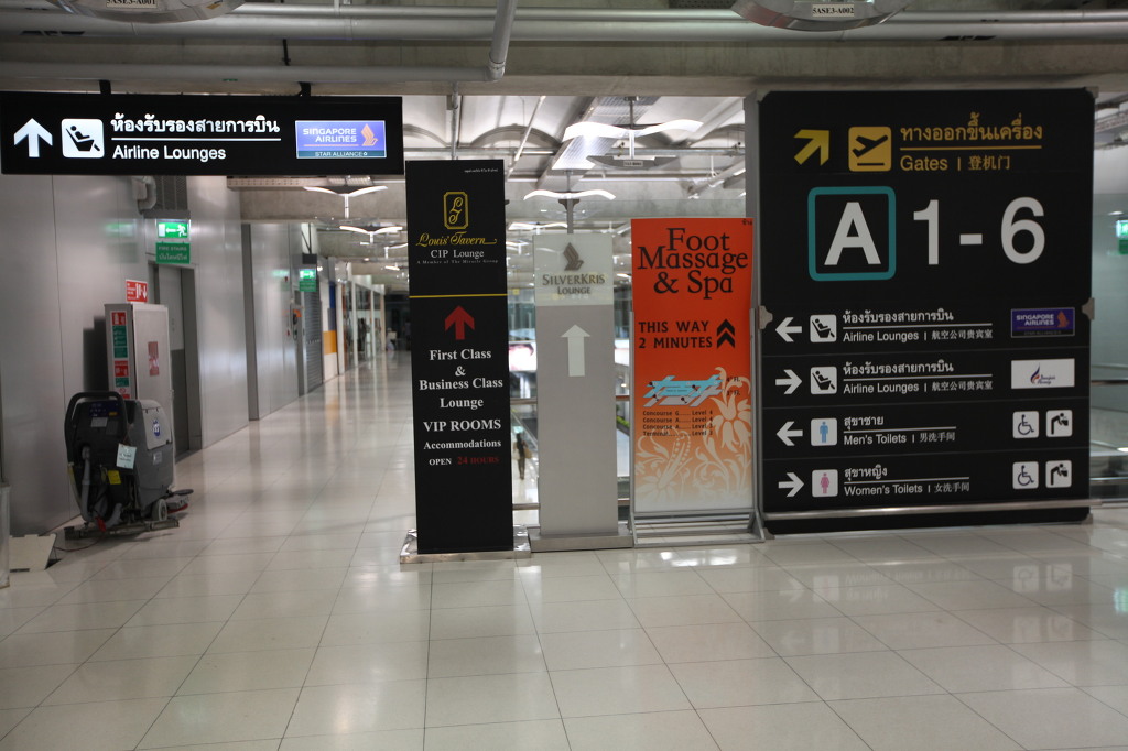 시설이 고급스럽고 먹을 것이 많은 퍼스트클라스 라운지는 A 구획 구석진 곳에 위치하며. 비즈니스클라스 라운지는 찾기쉬운 C 구획에 있다. 물론, 비즈니스 클라스 라운지도 퍼스트클라스보다는 조금 떨어지지만 타이항공 라운지와 비교하면 더 낫다.