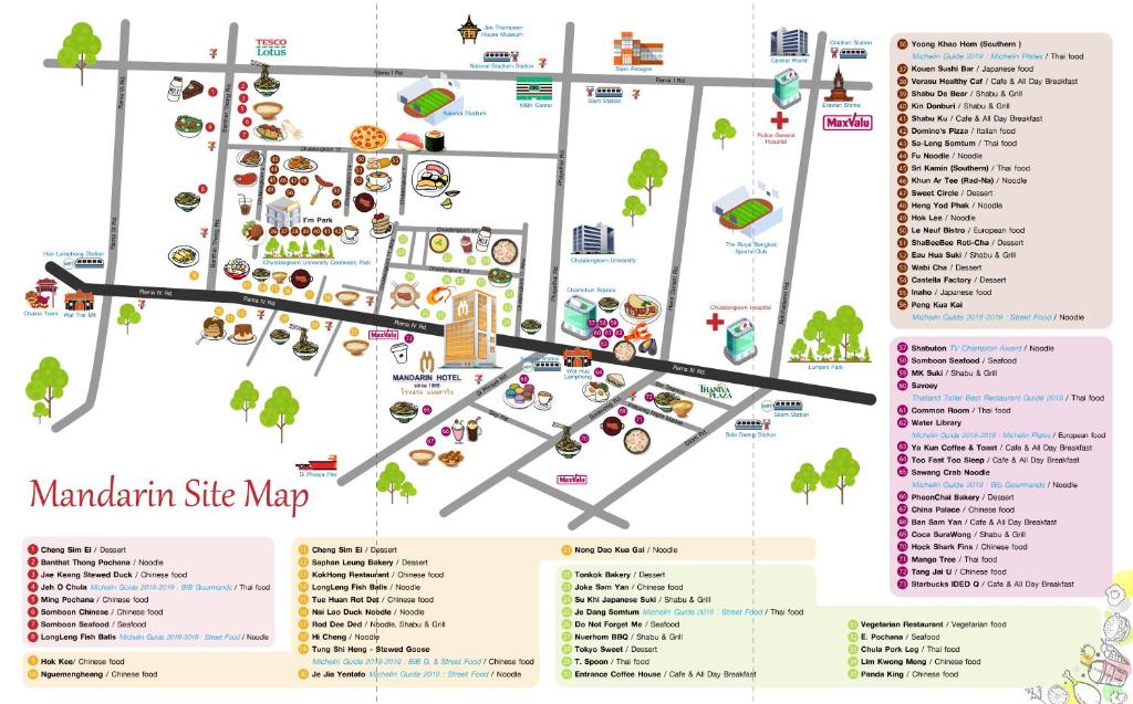 만다린호텔은 1965년에 오픈한 방콕 4성급 호텔로 총 객실수는 375개입니다. 방콕의 조용한 도심지역인 방콕 중앙 기차역인 훨람퐁역과 지하철역 삼얀역에서 가까운 호텔입니다. 지하철 삼얀역에서 도보로 약 4분 거리이며, 훨람퐁역도 비교적 가까워 차이나타운, 카오산로드,왕궁,사원으로 갈 때 추천하기 좋습니다. 또한 기차를 타고 북부,남부, 북동부 지역등으로 이동할 경우 우선적으로 추천되는 호텔입니다. 호텔내에는 렛츠릴랙스 스파 마사지점이 있어 마사지를 즐기기에 편리합니다.