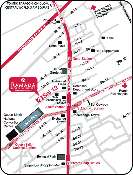 7. 위치: 수쿰빗소이 12안에 위치, 방콕공항에서 차로 30-40분정도 걸리며, 공항에서 택시비는 공항1층 택시부스 사용료(50밧), 톨게이트 사용료(45+25밧) 포함 대략 350-400밧정도.