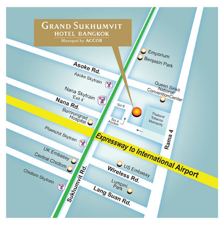 그랜드 수쿰빗 방콕호텔은 방콕의 중심가인 수쿰빗지역에서 꾸준히 인기가 있는 아코르계열과 관련있는 5성급 호텔입니다.