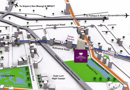 쉐라톤그랑데 수쿰빗호텔은 세계적인 호텔체인인 스타우드계열의 5성급 호텔로, 방콕교통의 중심지 수쿰빗 아속에