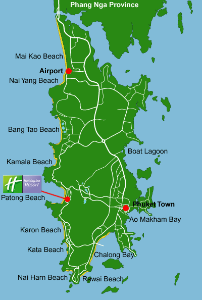 홀리데이인 푸켓 파통 리조트는 푸켓여행자들의 중심인 파통비치남쪽에 위치하며, 비치쪽의 메인윙,파통의 두번째 도로인 랏우팃도로변에 위치한 메인윙으로 구성되며, 파통비치 중심인 정실론 쇼핑몰에서 도보로 10분 거리에 위치한다. 고객을 최우선시하는 마인드, 5성급 리조트로서의 우수한 조식, 직원들의 친절, 가격대비 최상의 부페로 평가되는 홑리데이인 디너부페등은 홀리데이인 파통 리조트를 잘 설명하는 예이다. 특히 부모와 동반한 어린이 2인까지 무료인 디너부페는 한국여행객들에게 대단한 인기를 누리고 있다.