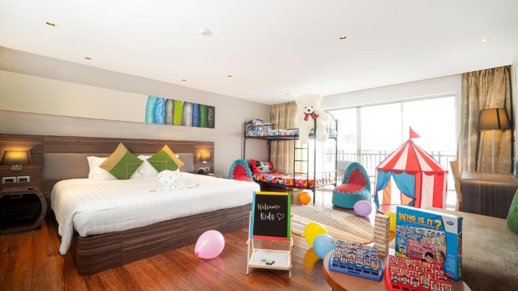 노보텔 푸켓 카론비치는 전형적인 가족여행컨셉의 리조트이다. 키즈클럽, 워터슬라이드가 있는 키즈풀 환경이 매우 우수하다. 노보텔 푸켓 카론비치 리조트는 룸이 다양하다. 스탠다드,수피리어,수피리어 플런지풀,딜럭스, 패밀리펀룸,스위트,패밀리펀 스위트,플런지 풀 스위룸으로 총 8개가 있다. 눈여겨볼 룸은 패밀리룸이다. 패밀리펀룸,패밀리펀 스위트룸은 아동동반 가족여행팀에 이상적인 환경을 가지고 있다. 패밀리룸에는 2층 침대가 있어 아동들이 좋아한다.