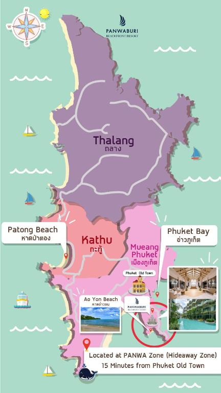 판와부리 비치프론트 푸켓 리조트는 푸켓 동쪽 판와지역의 아오욘(Ao Yon) 해변을 마주보고 있는 4.5성급 해변 리조트로 총 객실수는 58개입니다. 판와비치 지역에 숨겨진 보물로 일컬어지는 아오욘 해변을 접하고 있어 푸켓을 조용히 즐기기에 좋습니다. 아오욘 해변은 현지인들이 주로 찾는 해변으로 조용하고, 물가가 저렴한 것이 특징입니다. 해안가 도로변에는 저렴한 로컬레스토랑, 카페, 음료점이 있어 비교적 편리합니다.
