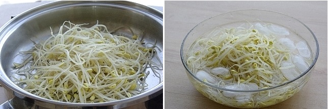 콩나물이 알맞게 삶아지면 얼음물에 재빨리 담그어 준 다음