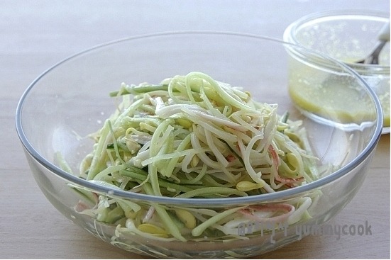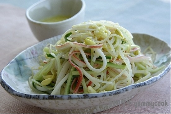 소스 : 연겨자 2작은술, 설탕 3큰술, 소금 1작은술, 식초 4큰술, 다진마늘 1큰술