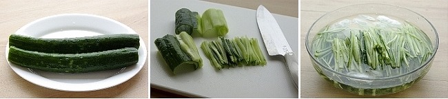 오이는 청오이로 준비를 해서 껍질을 소금약간으로 문질러 준 후 길이로 3등분을 해서