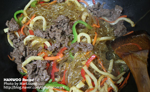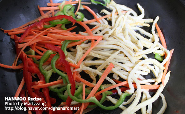 잡채와 한번 더 볶아야하니깐 너무 많이 익히진 마세요.