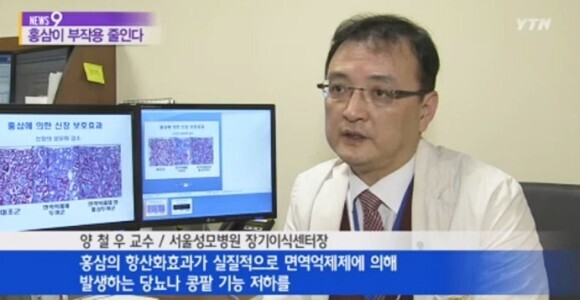실험 결과 홍삼을 함께 섭취한 그룹의 혈청 크로아틴 수치와 크레아틴 청소율이 21.3%나 증가했으며 세포 조직에서 염증 반응을 일으키는 사이토킨 성분은 33%나 줄어든 것을 확인할 수 있었다.
