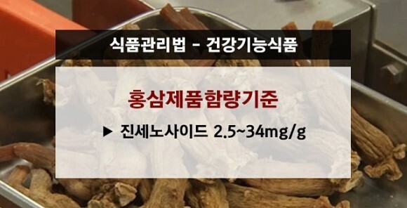 식품의약품안전처에서는 소비자가 몸에 좋은 홍삼을 쉽게 알아볼 수 있도록 일정한 기준을 충족하는 제품에만 '건강기능식품' 이라고 표기하도록 정해놓았습니다