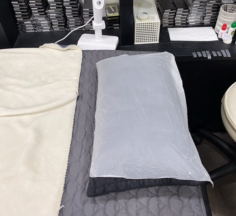 1회용 베게 비닐 커버를 앞에서 씌워줘서 위생적이고 좋았다