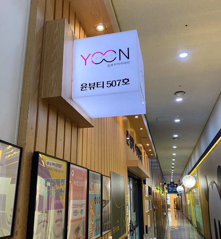 이렇게 윤뷰티 큐브 모양 간판이 보임!