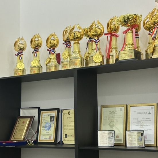 실력을 입증해 주는 무수한 트로피들..