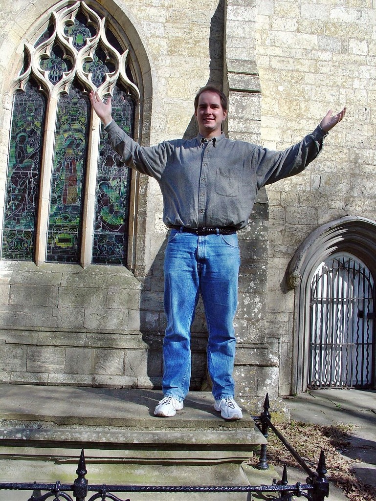 At the Market Cross, where John preached many sermons, and me preaching to a very repentant David