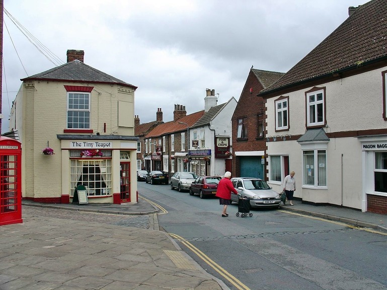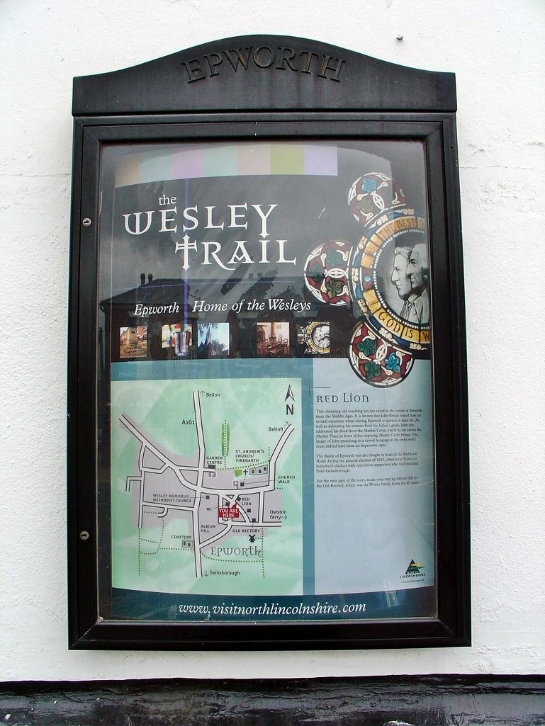 Epworth Town Centre leading the way to St. Andrews (also, with the Red Lion Pub, where Wesley stayed in later visits