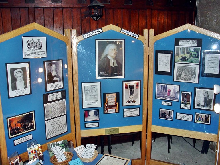 3백 명쯤 앉을 수 있을 것 같은 예배실에는 서너 명의 인부들이 낡은 벽면을 뜯어내고 있었다. 어린 시절 존 웨슬리를 비롯한 사무엘의 자녀들이 세례를 받았던 팔각형 돌 세례반, 성례전을 위해 사용했다는 수산나의 의자, 벽 쪽에는 웨슬리와 관련된 내용과 웨슬리탄생 3백주년에 이곳에서 벌어졌던 행사들이 병풍처럼 전시돼 있었다. 웨슬리가 여덟 살이 되어 최초로 성찬을 분급 받았을 때 사용했다는 은으로 된 성배는 루트교회로 옮겨져 직접 눈으로 확인할 수는 없었다.