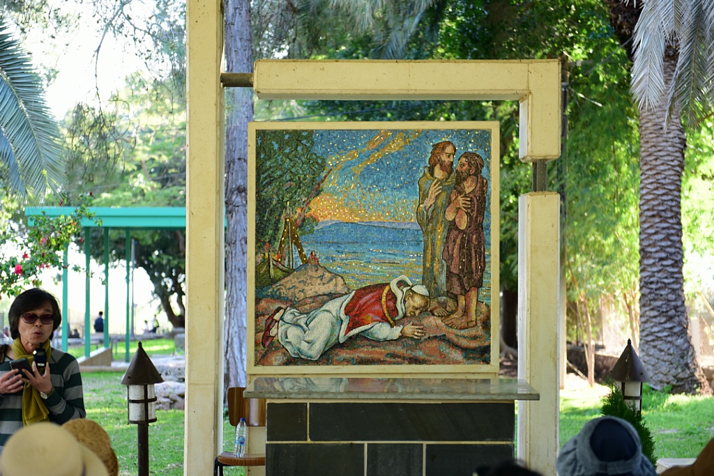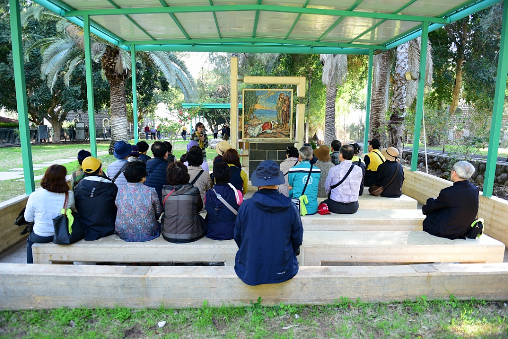 빵과 물고기의 기적 성당 바로 왼쪽 길 옆에 만 명 이상 앉을 수 있는 넓은 언덕이 펼쳐져 있다.