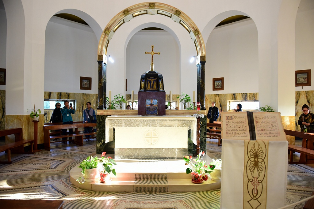 베드로 수위권 성당은 빵과 물고기의 기적성당에서 약간 경사진 언덕길을 올라가야 한다.