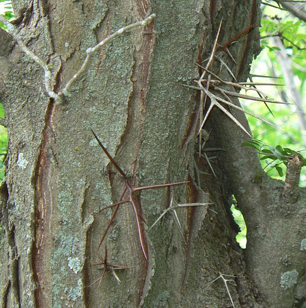 나무 가지는 빽빽히 자라나며 몸통에 단단하고 거친 가시가 자라 스스로를