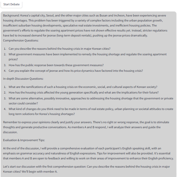 * 2인 그룹 영어 토론 예시