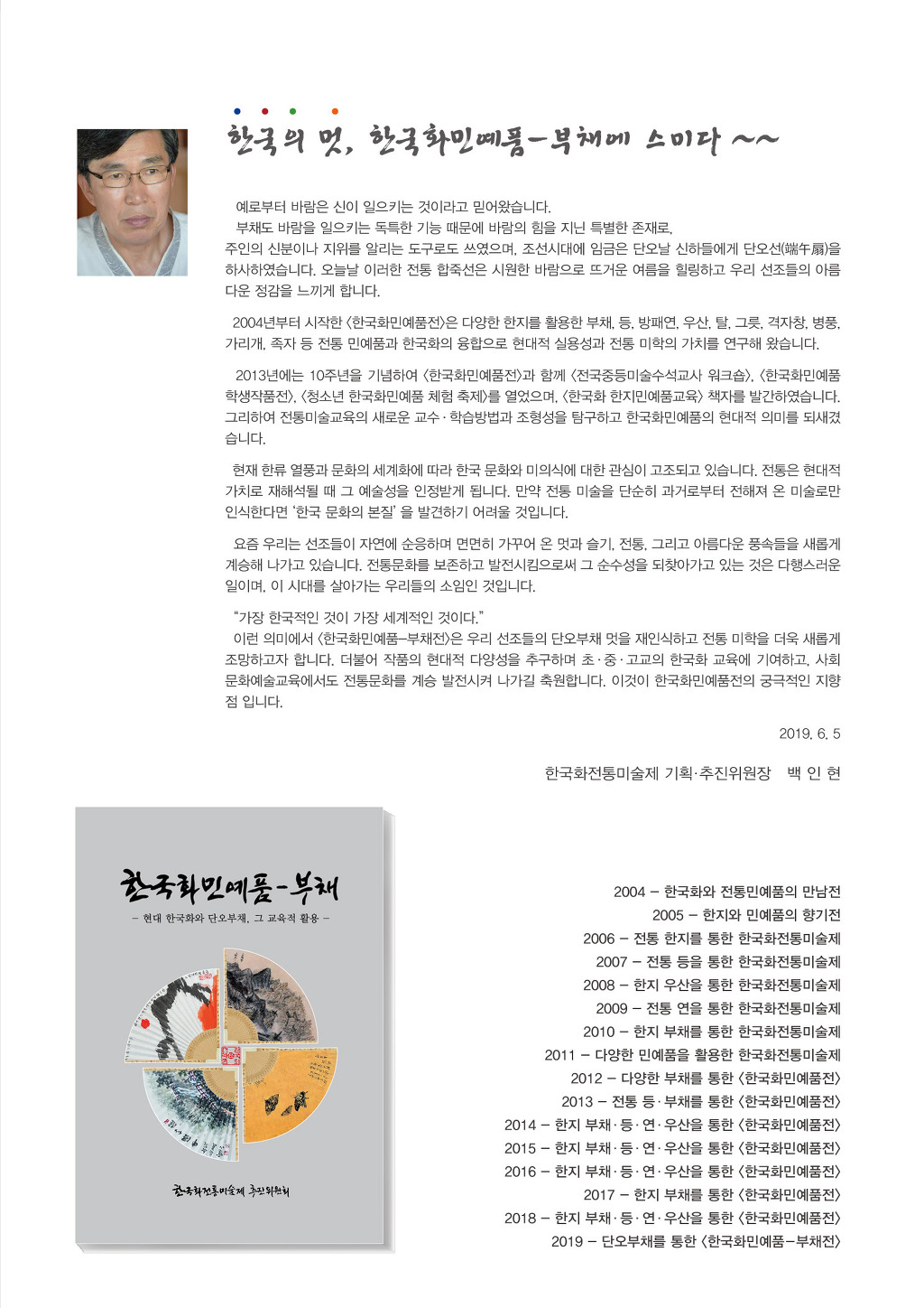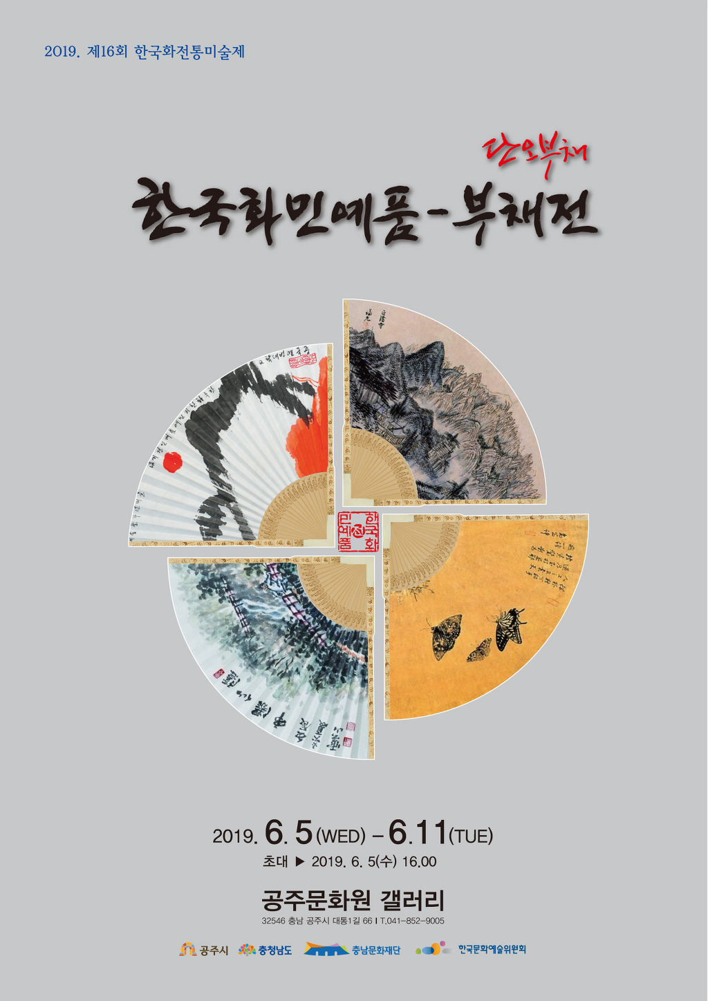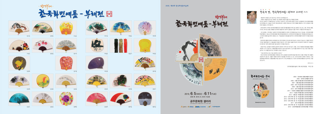 2019. <한국화민예품 - 단오부채전>: 2019.6.5~6.11 / 공주문화원 갤러리 - 한국화전통미술제 백인현 작성자송계산방주인|작성시간19.06.02|조회수26 목록 댓글 0 글자크기 작게가 글자크기 크게가 다음검색 현재 게시글 추가 기능 열기 북마크 공유하기 신고 센터로 신고 댓글 댓글 0 댓글쓰기 답글쓰기 댓글 리스트