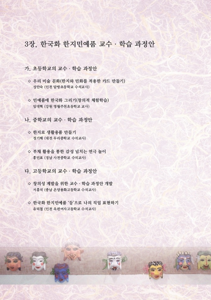 한국화 한지민예품 - 교수학습 과정안 (초, 중, 고교 전체) : 백인현 작성자송계산방주인|작성시간14.01.03|조회수25 목록 댓글 0 글자크기 작게가 글자크기 크게가 클맄 !! -> PDF로 볼 수 있습니다. 초, 중, 고교 전체(한국화 한지민예품교육 과정안).pdf 첨부파일첨부된 파일이 3개 있습니다. jpg 파일 27.3장 교수학습 과정안.jpg 다운로드 pdf 파일 47p부터.pdf 다운로드 pdf 파일 초, 중, 고교 전체(한국화 한지민예품교육 과정안).pdf 다운로드 다음검색 현재 게시글 추가 기능 열기 북마크 공유하기 신고 센터로 신고 댓글 댓글 0 댓글쓰기 답글쓰기 댓글 리스트