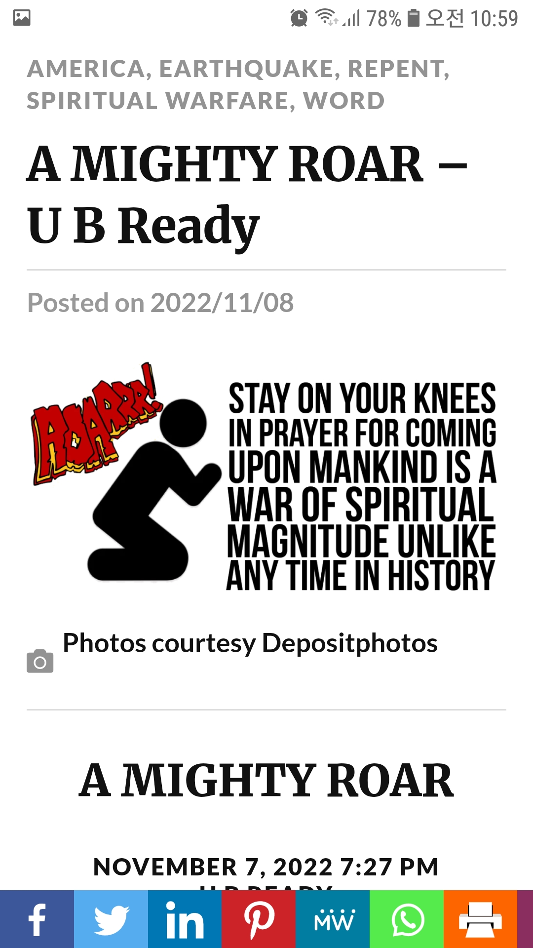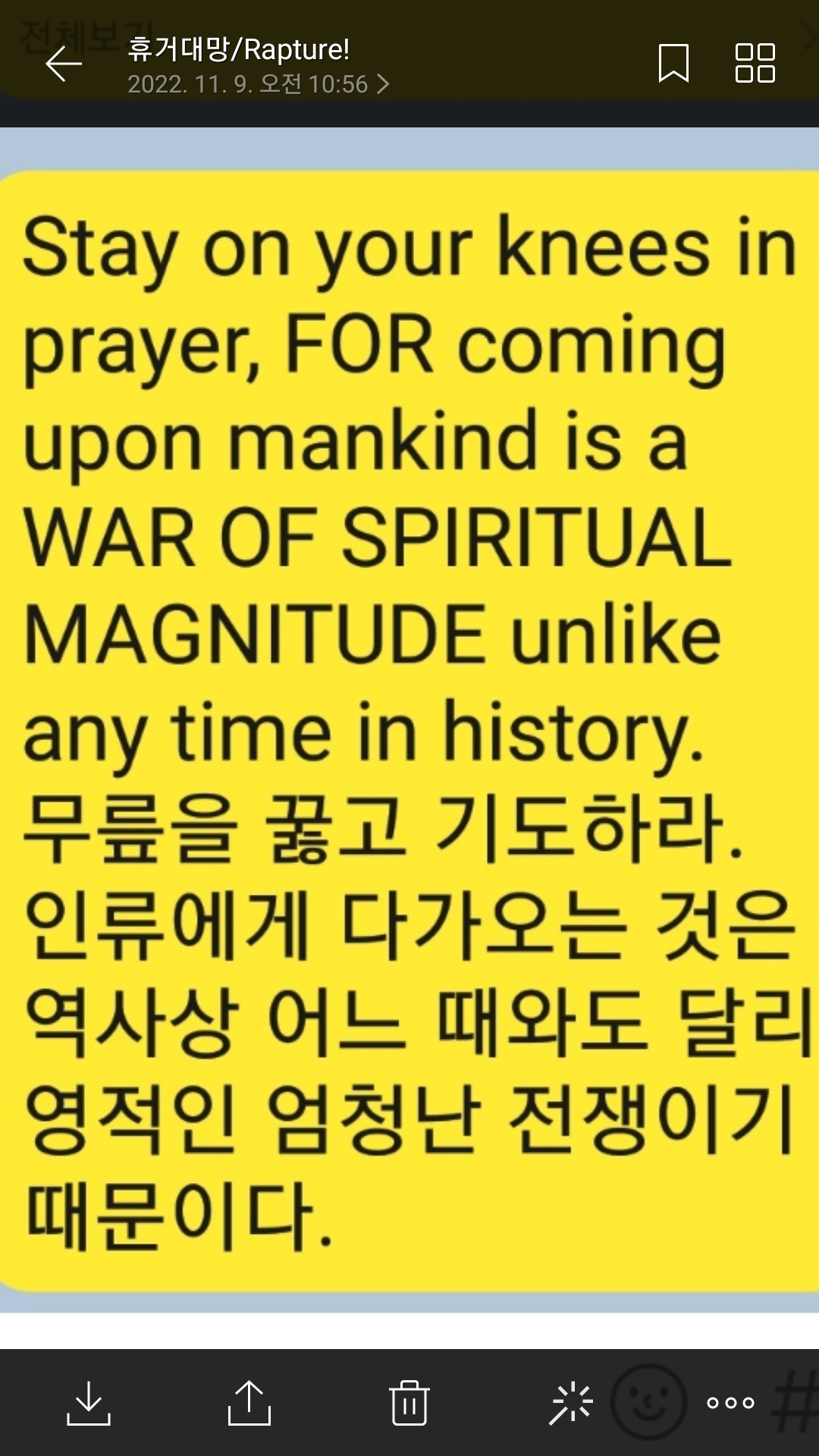 말하라. 무릎을 꿇고 기도하라. 인류에게 다가오는 것은 역사상 어느 때와도 달리 영적인 엄청난 전쟁이기