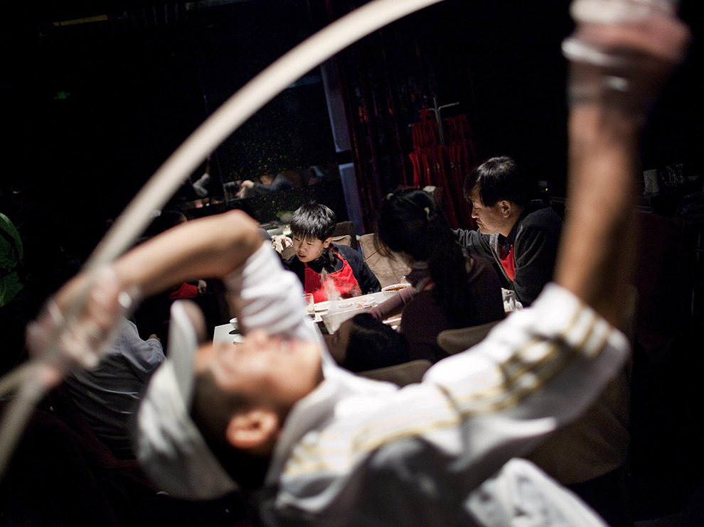 중국 베이징의 한 식당에서 국수를 만드는 사람
