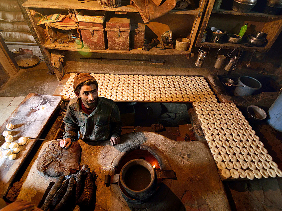 인도 카슈미르지역의 전통 빵 만드는 사람