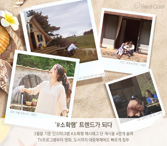 언젠가부터 SNS 채널에는 ‘#소확행’ 해시태그가 빈번하게 등장하기 시작했고 ‘#휘게’와 ‘#라곰’ 해시태그를 단 게시물도 넘쳐납니다. 이런 트렌드를 반영하듯 대중매체에도 소확행이 빠르게 침투했습니다. 힐링 코드의 TV프로그램 ‘효리네 민박’, ‘윤식당’ 등이 인기를 끈 데 이어 소박한 삶의 행복을 보여주는 ‘리틀 포레스트’ 같은 영화에 ‘숲속의 작은 집’, ‘이불 밖은 위험해’ 등의 프로그램이 방송을 탔죠. 최근 유행하는 이러한 라이프스타일의 공통점은 뭘까요? 용어도 다르고 스타일도 차이가 있겠지만 대부분 거창한 목표를 내세우는 대신 찰나의 작은 순간에 집중하는 것으로 귀결됩니다.