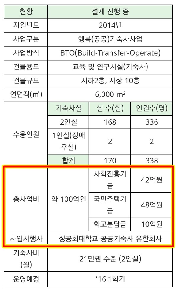 성공회대 행복 기숙사는 아래 사진처럼 성공회 대학교 분담금 10억이 들어가는 사업입니다.