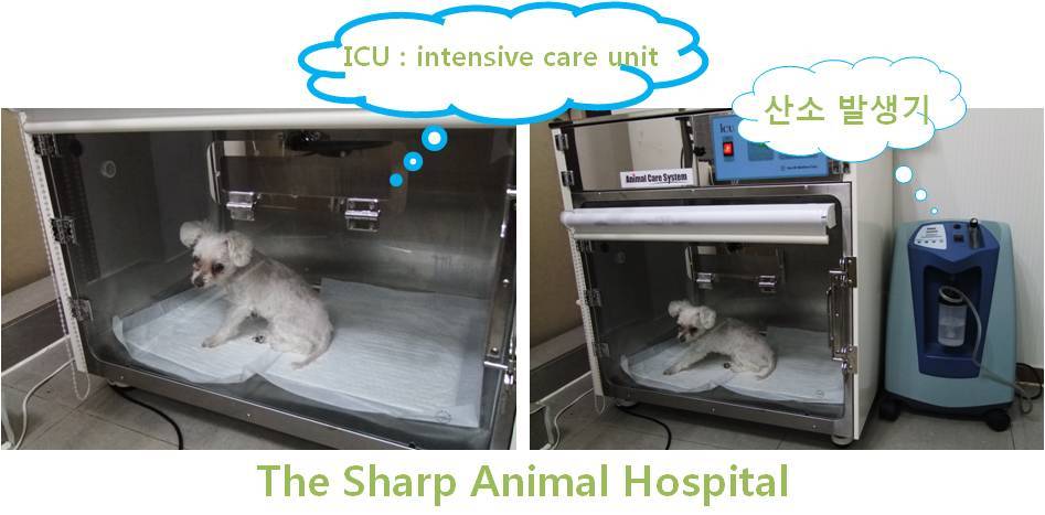 아래 사진에서 처럼 중환자 입원실에 입원을 하여 산소 발생기를 통해 집중적인 산소처치를 받았습니다.