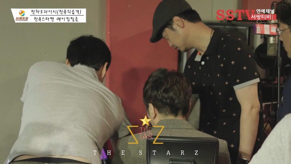 인터뷰 준비중인 더스타즈 맴버들과 스텝들.