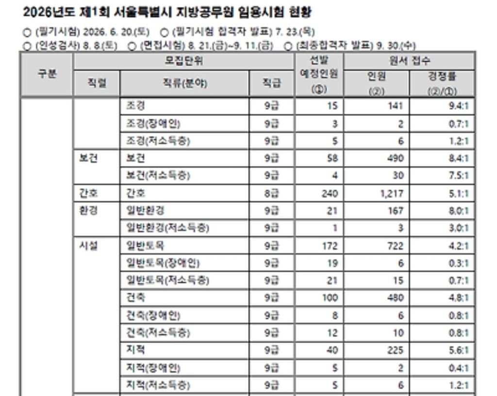 26년 서울 경쟁률 작성자합병분할지목|작성시간26.03.31|조회수553 목록 댓글 1 글자크기 작게가 글자크기 크게가 다음검색 현재 게시글 추가 기능 열기 북마크 공유하기 신고 센터로 신고 댓글 댓글 1 댓글쓰기 답글쓰기 댓글 리스트 작성자전전 | 작성시간 26.03.31 확실히 많이 뽑으니 경쟁률이 내려간거같아요 댓글 전체보기