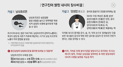 조선시대에 가장 오래 산 사람은 왕도, 양반도 아닌 바로 내시(환관)이었다. 조선시대에 작성된 <양세계보>는 내시 777명의 가계도가 기록되어 있는 족보다. 이를 바탕으로 한 ‘내시 장수 연구’ 결과에 따르면 조선시대 내시(환관)들이 양반 남성들보다 평균 14~19년 더 오래 살았으며, 100세 이상 장수한 경우도 있다고 한다. 이 논문은 내시들의 장수 비결로 '거세'로 인해 남성호르몬 분비가 억제된 때문으로 추정하고 있다.