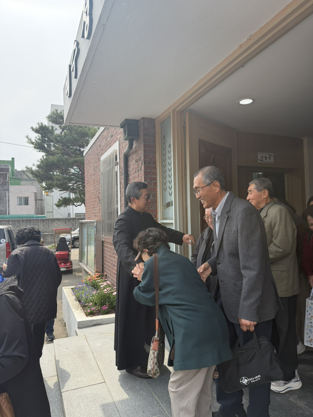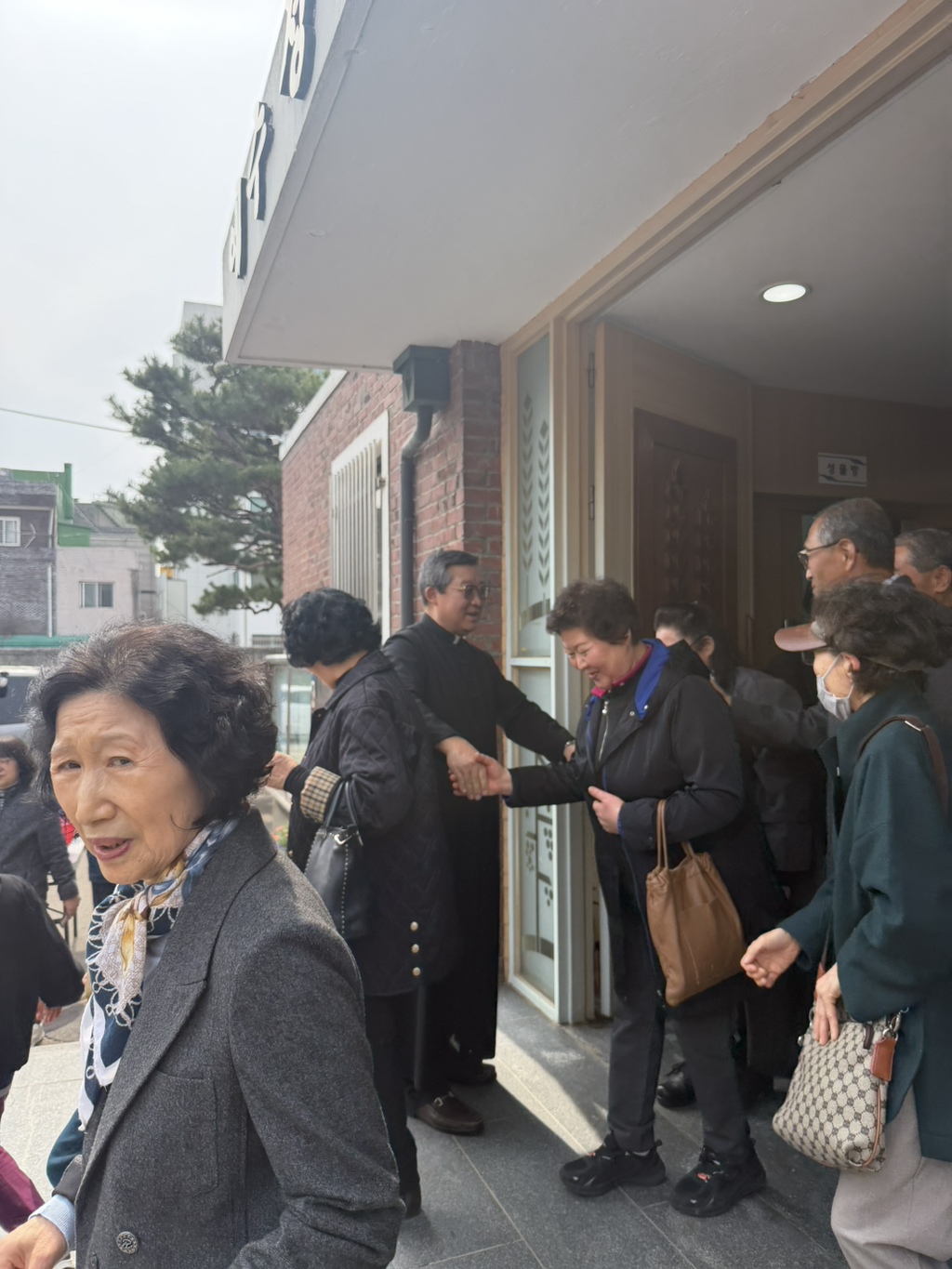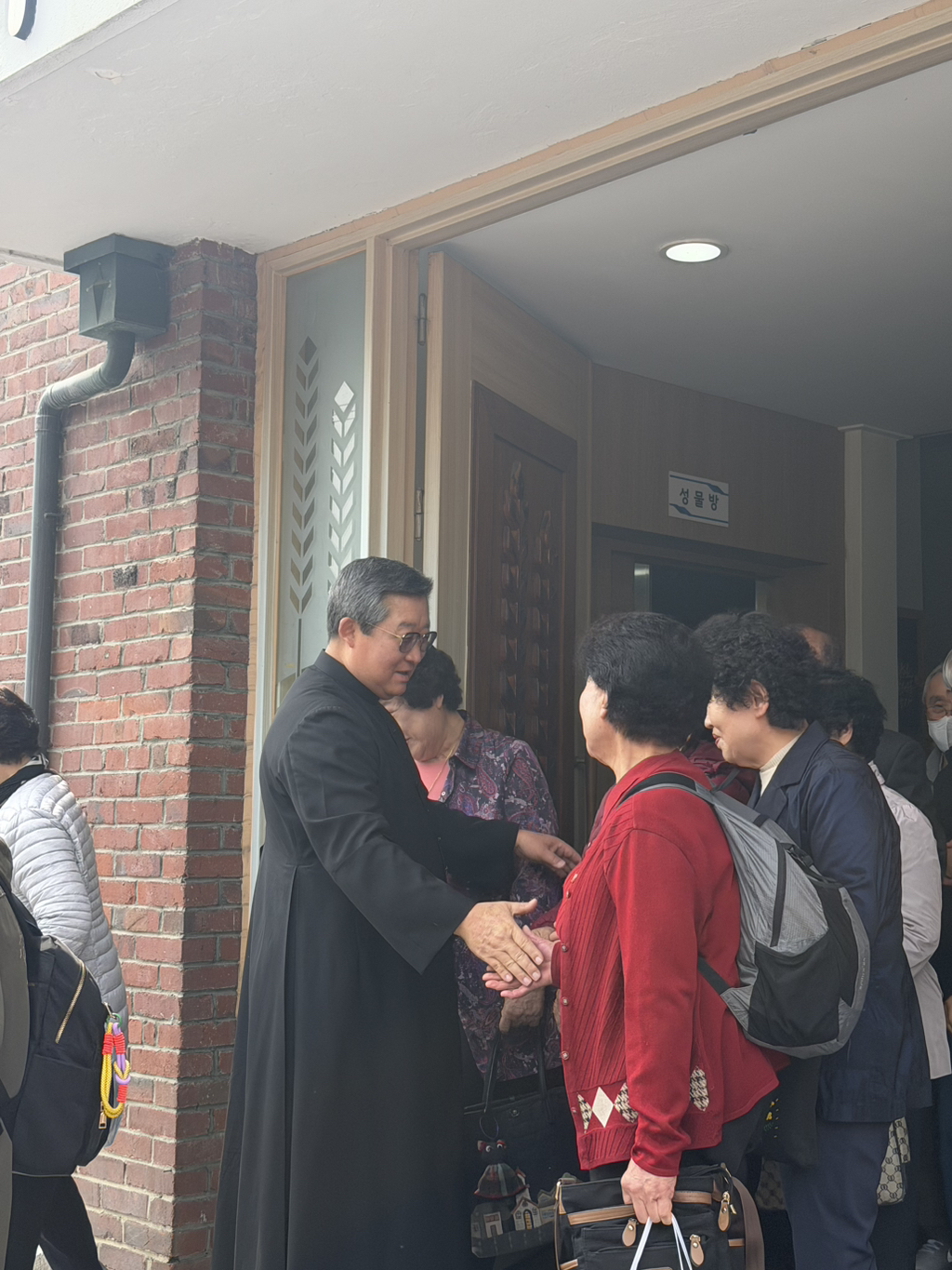 서운동 신자분들과 일일이 악수하시면서