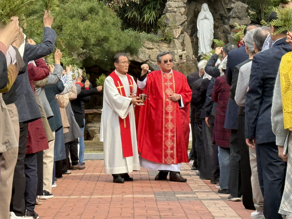 성지가지를 성수로 축복받는 전례가 진행되었습니다