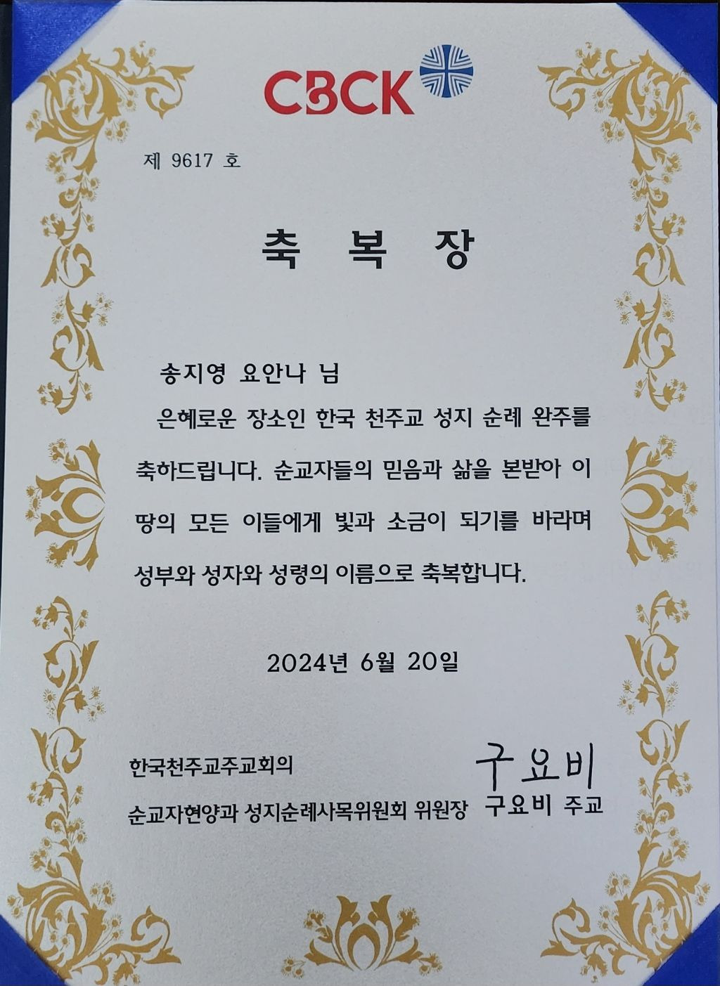 작성자초록할머니 작성시간 24.09.22 성지순례 완주 축하드립니다