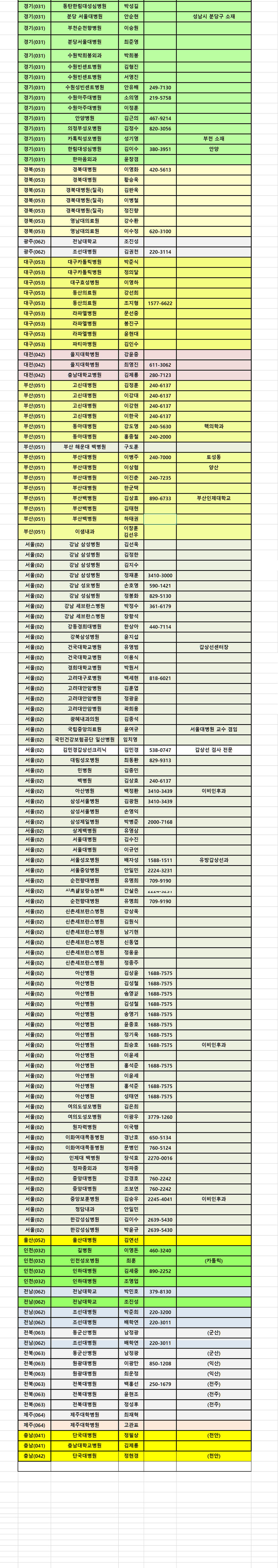 아래 목록에 없는 회원님이 다니는병원과 의사를 댓글로 추천 바랍니다.