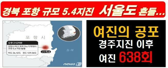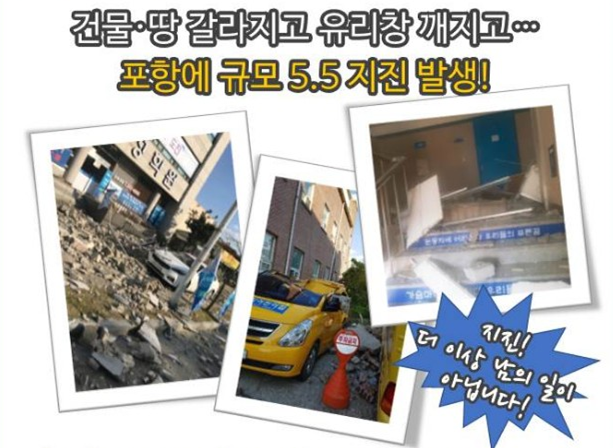 우리나라도 더 이상 지진으로 부터 안전지대가 아닙니다.
