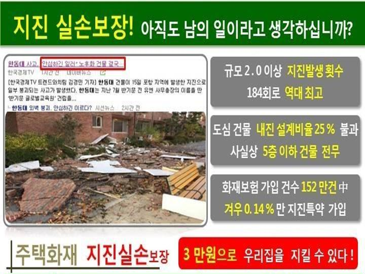 지진 보험 더 이상 망설이시면 안됩니다..