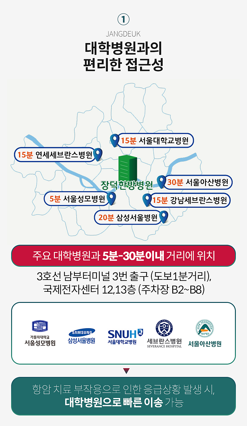 또한 주요 대학병원과 5~30분 이내 거리에 위치해 있어 접근성이 편리하다는 장점이 있으며, 암 환자분들이 쾌적한 공간에서 편안한 입원 생활을 이어가실 수 있도록 다양한 편의 및 힐링 시설을 마련해두었습니다.